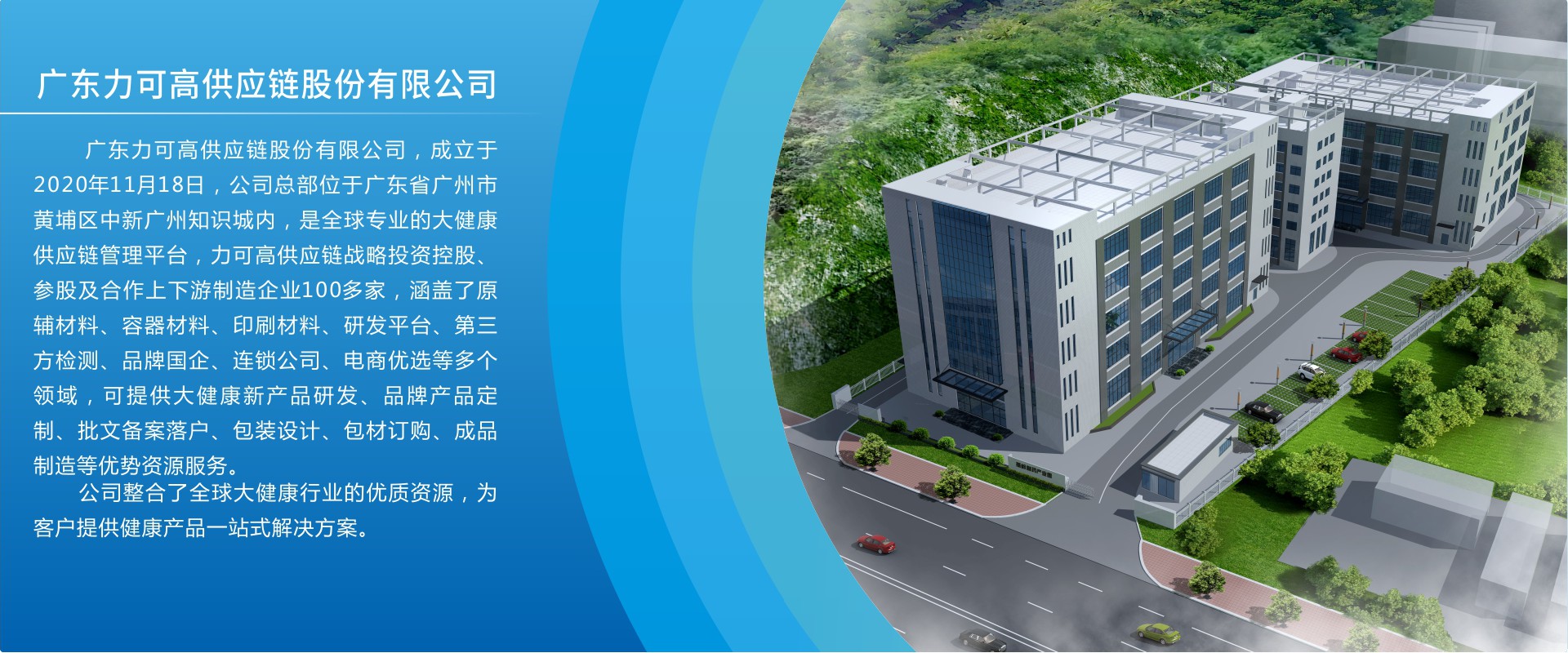 廣東力可高供應(yīng)鏈股份有限公司,成立于2020年11月,位于廣州市黃埔區(qū)中新知識(shí)城,公司注冊(cè)資本6000萬(wàn)元。      力可高供應(yīng)鏈,作為一家在供應(yīng)鏈領(lǐng)域嶄露頭角的創(chuàng)新型企業(yè),正憑借其卓越的專業(yè)能力與不斷進(jìn)取的精神,重塑行業(yè)格局。已發(fā)展成為以生物醫(yī)藥大健康行業(yè)為核心,以投資并購(gòu)、供應(yīng)鏈集采、供應(yīng)鏈金融、品牌運(yùn)營(yíng)及跨境電商為一體的生物醫(yī)藥大健康產(chǎn)業(yè)鏈現(xiàn)代化企業(yè)。      力可高供應(yīng)鏈自成立以來(lái),始終秉持“高效、協(xié)同、創(chuàng)新、共贏”的經(jīng)營(yíng)理念,專注于生物醫(yī)藥大健康供應(yīng)鏈管理的全流程優(yōu)化,致力于為客戶提供一站式、定制化的供應(yīng)鏈解決方案。先后投資設(shè)立成長(zhǎng)力國(guó)際控股、修···